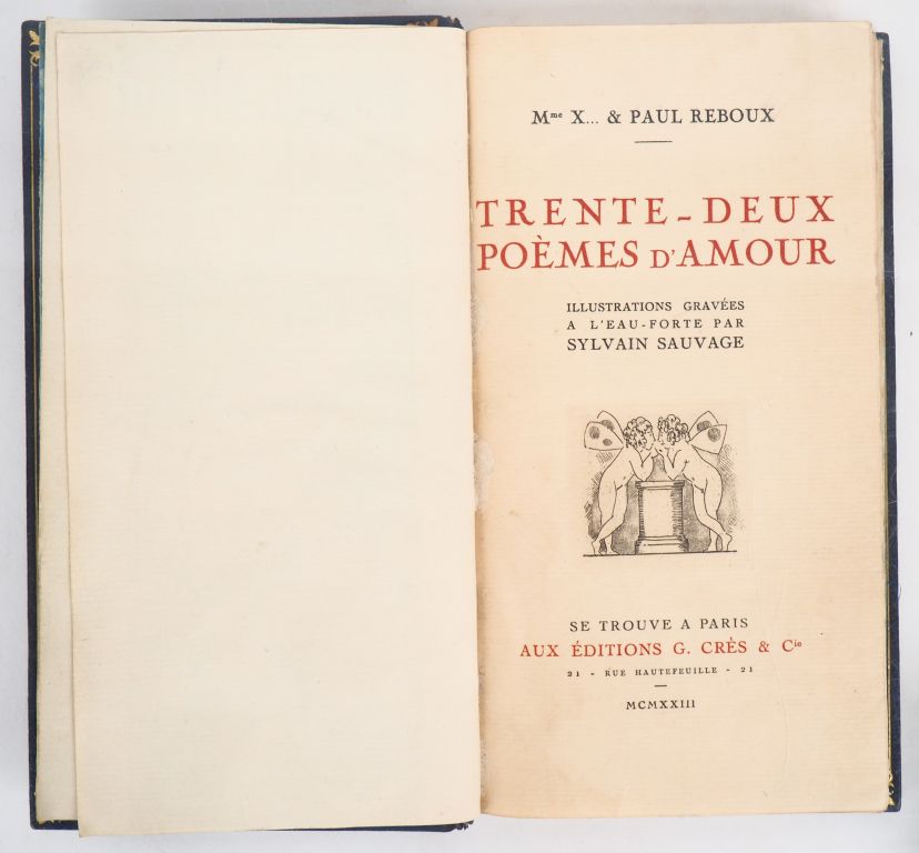 [SAUVAGE]. Mme X… REBOUX (P.). TRENTE-DEUX POÈMES D’AMOUR. P., Crès,...