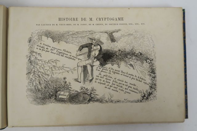 TOPFFER. Histoire de M. Cryptogame par l'auteur de M. Vieux-Bois, de M. Jabot, etc. 3ème édition. Paris, s.e., Imprimerie Claye s.d. (ca 1850). in-8 à l'italienne. 1/2 chagr. violet, fleur. dor. (Rel. d'époque). Titre et 64 planches de bandes dessinées, montées sur onglet.