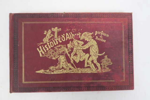 TOPFFER (Rodolphe). Histoire d'Albert par Simon de Nantua. Paris, s.n. s.d. Impr. Caillet. in-8 à l'italienne. Percaline bordeaux, illustrée d'une composition dor., tr. dor. (Rel. éditeur). Titre et 41 planches en bande dessinée. Percaline défraîchie, charnière int. déboîtée.