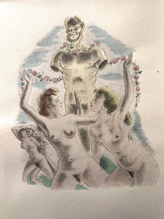 VERLAINE (P.). ŒUVRES LIBRES. Amies, Femmes, Hombres. P., Pour la Société des Amis du Symbolisme, [vers 1940]. Petit in-4 en ff., étui. ÉDITION ILLUSTRÉE de 12 COMPOSITIONS h.-t. libres coloriées au pochoir. L’auteur, anonyme, reste inconnu. UN des 964 exemplaires numérotés sur offset avec une SUITE en noir des illustrations sous chemise. ¶ Dutel, 2091 – Pas dans Pia.