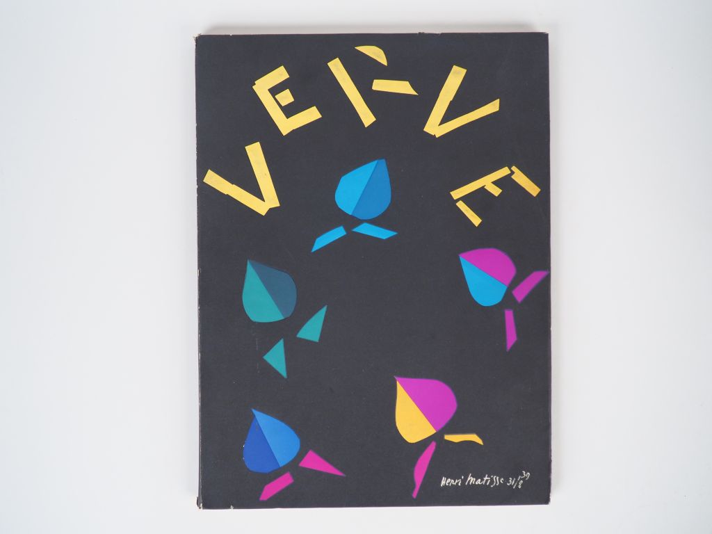 VERVE Vol 2, n° 8. 1940. Textes : Rouault, Claudel, Valéry, Reverdy, Malraux.. Peintures : Rouault, Derain, Braque… Couverture originale par Henri Matisse. In-4, cartonné, jaquette à rabats