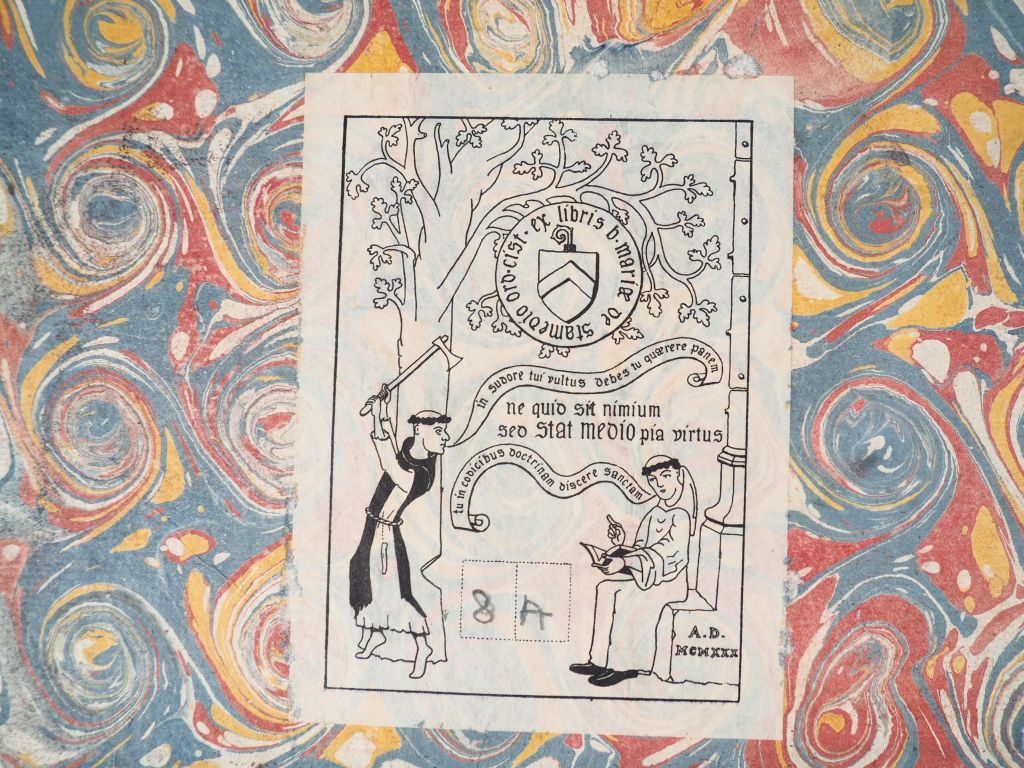 VIC (Dom Claude de) et VAISSÈTE (Dom Joseph). HISTOIRE GÉNÉRALE DE LANGUEDOC, avec des Notes et les Pièces justificatives. Paris, Jacques Vincent, 1730-1745. Cinq volumes in-folio veau fauve marbré, dos six nerfs, caissons dorés très ornés, pièces de titre et de tomaison maroquin rouge, encadrement de triple filet à froid sur les plats, tranches rouges (Reliure de l'époque). T. I : XX-758 pages, 214 pages (dont 4 ff. de planches gravées num. de 1 à 4 puis 210 pp. à 2 colonnes ), (1) f. d’approbation et privilège 1 carte à double page et dépliante aquarellée, 4 planches à double page montées sur onglets – T. II : (3) ff., 648 pages, 703 pages paginées à 2 colonnes, (1) page d'errata et avis aux relieurs, 2 cartes aquarellées (dont 1 dépliante), 2 planches (dont 1 dépliante) – T. III : X-606 pages, 706 pages paginées à 2 colonnes, 2 planches dépliantes – T. IV : XXII pages, (1) f. de sommaire, 1 carte dépliante, 520 pages, 570 pages paginées à 2 colonnes, (1) page d'errata et approbation, 1 carte à double page dépliante aquarellée, 9 planches (dont 7 dépliantes) – T. V : VII pages, (3) pages, 688 pages, 494 pages paginées à 2 colonnes, (1) page d’errata, 14 planches (dont 3 dépliantes et 8 de sceaux). Manques à 3 coiffes, mors en partie fendus mais coutures solides, coins émoussés. Ex-libris daté « 1930 ». ÉDITION ORIGINALE de L'UNE DES MEILLEURES HISTOIRES RÉGIONALES JAMAIS PUBLIÉES. Elle est illustrée de 4 CARTES rehaussées à l'aquarelle (dont 3 dépliantes) et de 35 PLANCHES hors-texte (dont 17 dépliantes) en comptabilisant comme « planches hors-texte » les 4 planches gravées qui sont comprises dans la pagination de la partie Preuves de l’histoire de Languedoc au t. 1. Également vignettes de titre, 54 bandeaux, 56 lettrines et 36 culs-de-lampe gravés par Cochin, Rigaud et Tardieu. L'OUVRAGE REMARQUABLE PAR SON AMPLEUR, SON ÉRUDITION ET SON STYLE, commence à l'an de Rome 163 et s'arrête à la mort de Louis XIII, en 1643. A la fin de chaque volume sont rassemblés les inscriptions antiques, les diplômes, les chartes et autres documents servant de preuves au texte du traité. SÉDUISANT EXEMPLAIRE en reliure strictement uniforme, condition peu commune puisque le 5ème tome est paru 15 ans après les quatre premiers et COMPLET de toutes les planches et cartes. ¶ Saffroy, II, 26377 : « Ouvrage célèbre et justement estimé » - Brunet, V, 1029 : « Une des meilleures histoires particulières de nos provinces » - Cohen, 1011 - Rothschild, 2347.