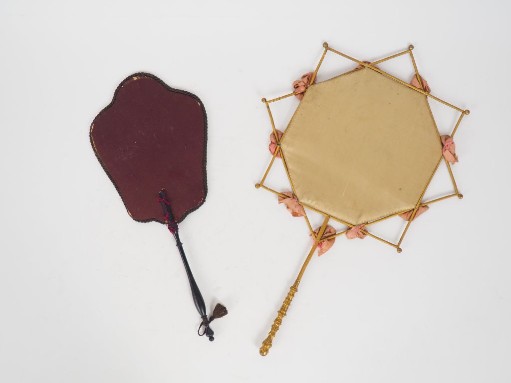 Lot de 2 écrans de chaleur Napoléon III en soie brodée, bois doré et bois noi au prix de 40 à 60 € en vente aux enchères par l'hôtel des ventes Primardeco