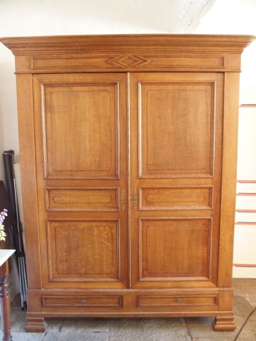 Armoire de style Empire en chêne ouvrant à deux portes et deux tiroirs...