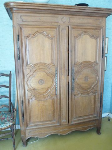 Armoire de style Louis XV en chêne, mouluré et sculpté, ouvrant à deux portes à trois panneaux