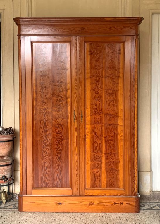 Armoire lingère de plinthe en pitchpin. Dim. 242 x 150 x 58 cm