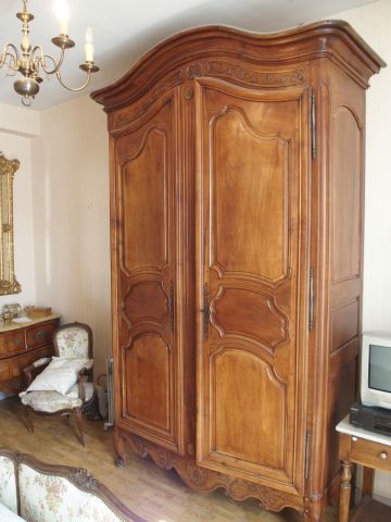 Armoire Louis XV en noyer corniche chapeau de gendarme