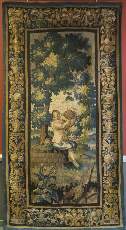AUBUSSON. Cantonnière XVIIème « Gentilhomme se désaltérant » (état moyen)