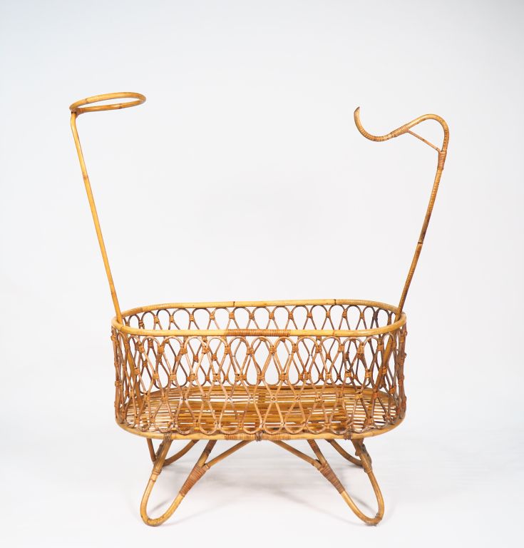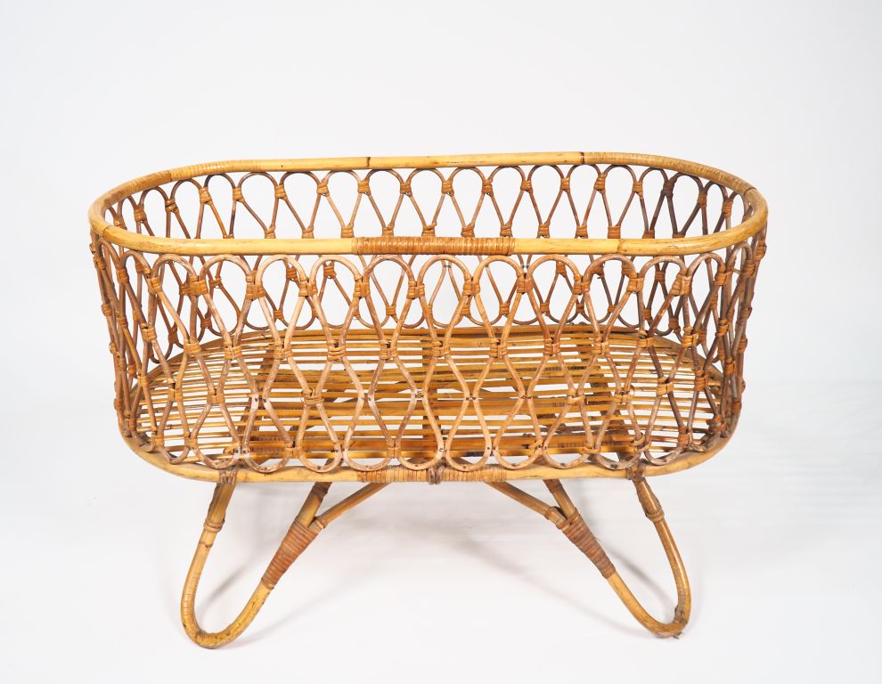 Lot de Berceau des années 70, en rotin avec ses accessoires. au prix de 100 à 150 € en vente aux enchères par l'hôtel des ventes Primardeco