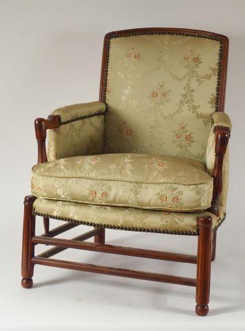 Lot de Bergère d'enfant XIXème en noyer, garniture de soierie vert amande. au prix de 150 à 200 € en vente aux enchères par l'hôtel des ventes Primardeco