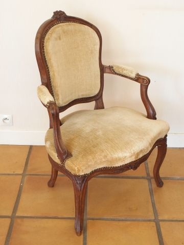 Cabriolet Louis XV en bois naturel, mouluré et sculpté, à décor de fleurettes