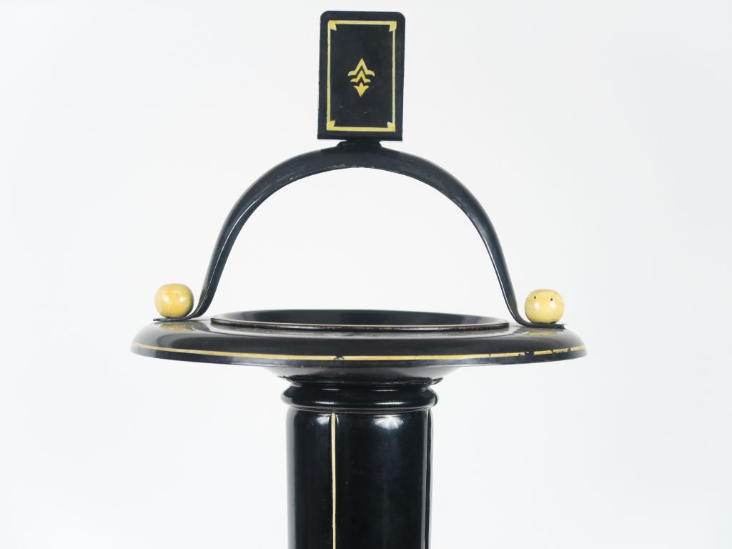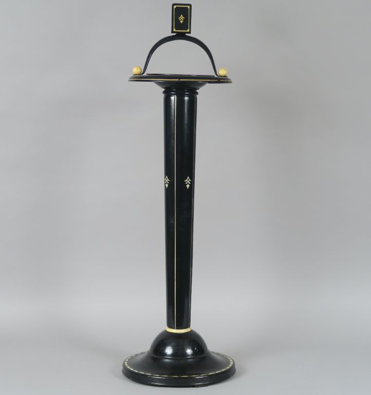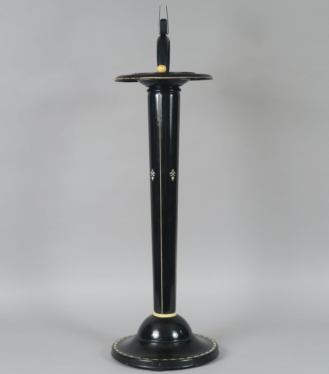 Cendrier sur pied années 40 en métal laqué noir et ivoire. H. 82 cm