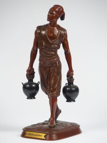 DEBUT "Le porteur d'eau". Sculpture en bronze à patine médaille. Signée H. 34 cm