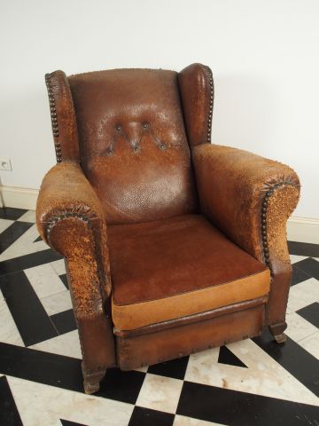Lot de Deux différents fauteuils club en cuir (mauvais état) au prix de 80 à 100 € en vente aux enchères par l'hôtel des ventes Primardeco