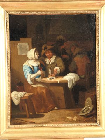 Lot de Ecole du Nord XVIIIe 'Scène d’auberge’. Huile sur toile. 47 x 37 cm au prix de 350 à 500 € en vente aux enchères par l'hôtel des ventes Primardeco
