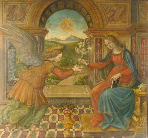 Ecole FLORENTINE vers 1900, suiveur de Lorenzo di CREDI L'Annonciation Toile 73 x 79 cm Restaurations Expert : Cabinet Turquin