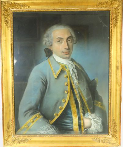 Ecole française fin XVIII ème – début XIX ème « Portrait de gentilhomme en bleu » Pastel 75 x 61 cm