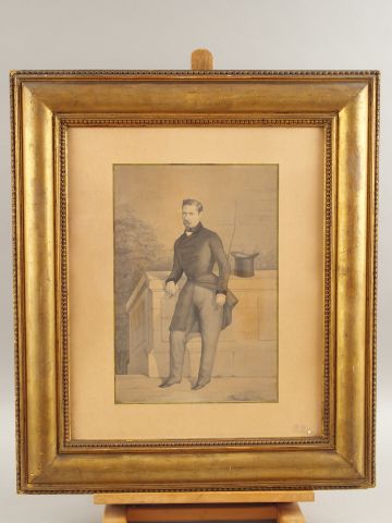 Ecole XIXème "Portrait d'homme en habit". Lavis, signé en bas à droite. Dim. : 34 x 23 cm