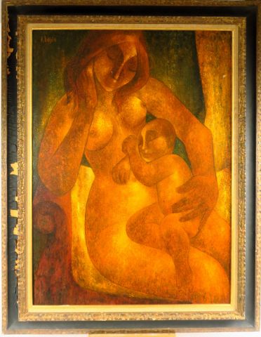 F. BAJEN 'Maternité' Huile sur toile, signée en haut à gauche 100 x 73 cm