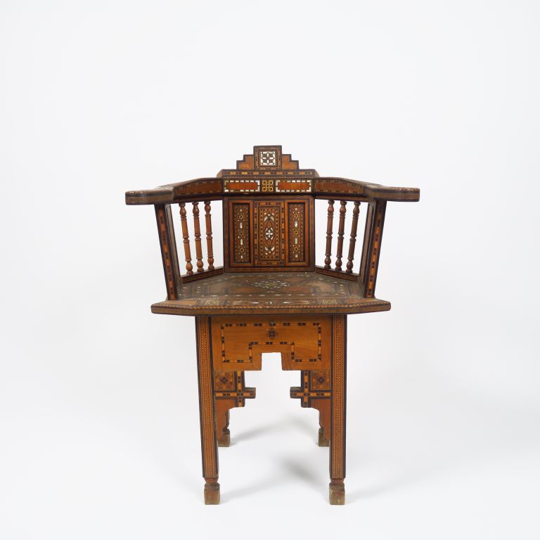 Lot de Fauteuil syrien 1900 en marqueterie. au prix de 100 à 120 € en vente aux enchères par l'hôtel des ventes Primardeco