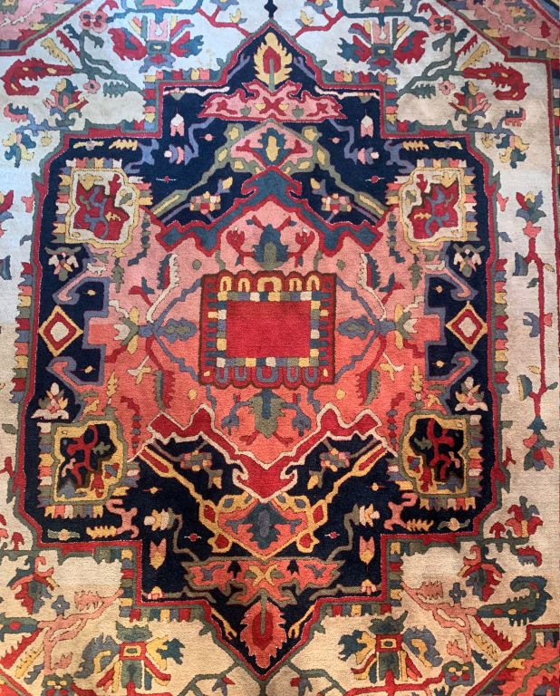 Grand tapis d'Orient à fond rouge. Dim. 338 x 250 cm