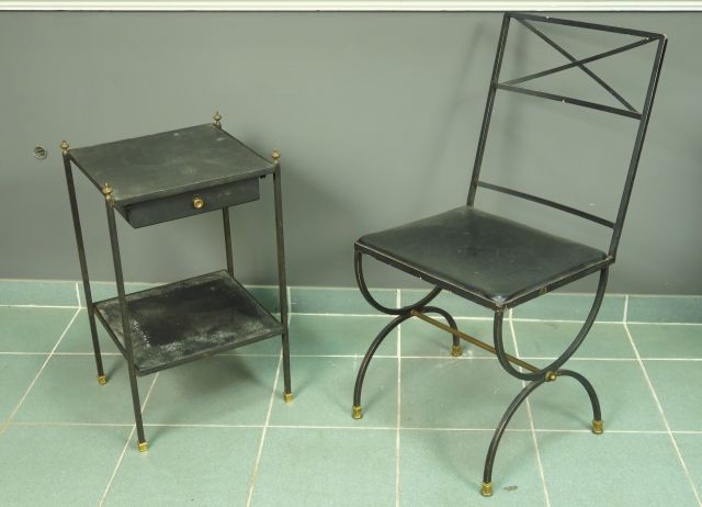 Lot de Guéridon et chaise 1940 en cuir et métal. au prix de 150 à 200 € en vente aux enchères par l'hôtel des ventes Primardeco