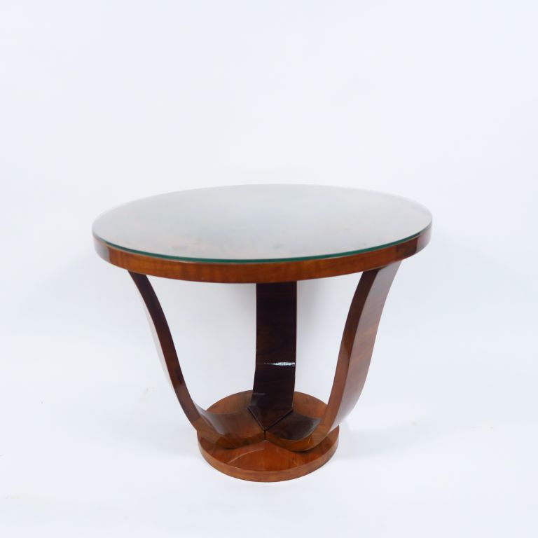 Guéridon tripode de style Art déco en noyer et placage de noyer. H. 56 cm