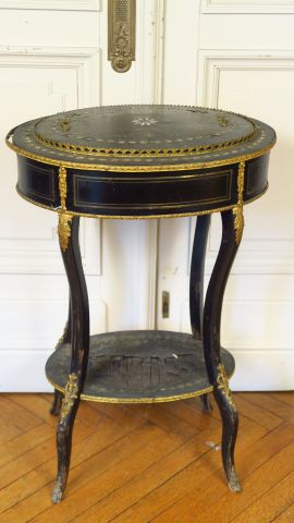 Jardinière Napoléon III en marqueterie de nacre et laiton sur fond de bois noirci (état moyen). On y joint une autre jardinière de même époque (mauvais état)