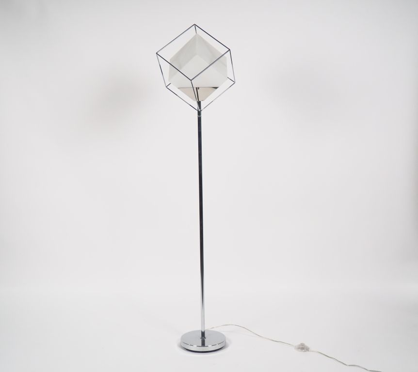 Lampadaire Drimmer en métal chromé et verre fumé. H. 162 cm