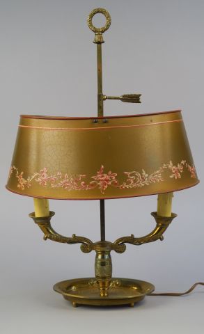 Lampe bouillote de style Empire en bronze et tôle, éclairant à deux lumières