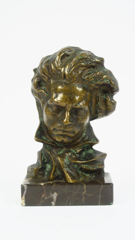 LE FAGUAYS. 'Portrait de Bethoveen'. Sujet en bronze patiné. Signé. H. 16 cm