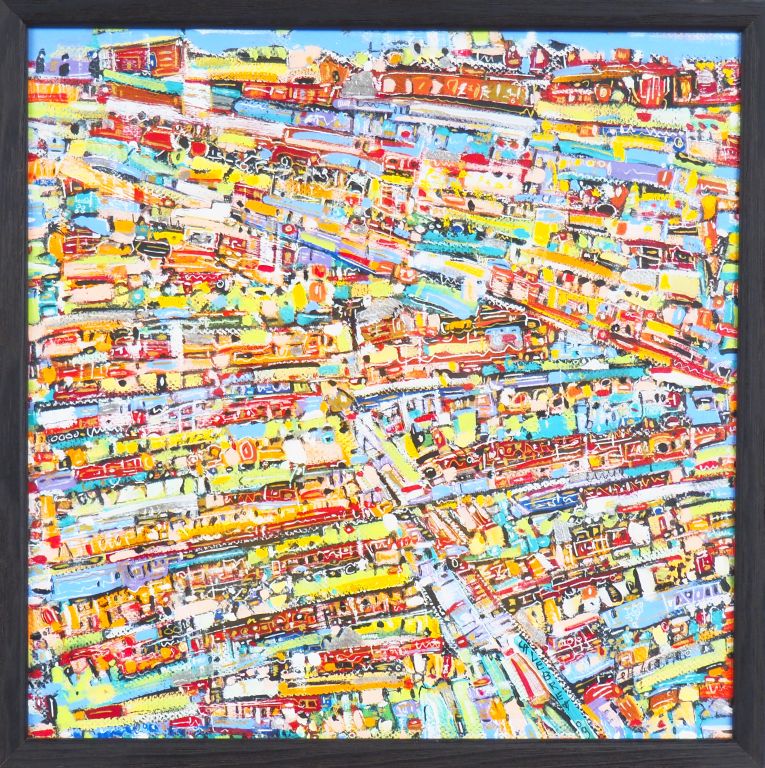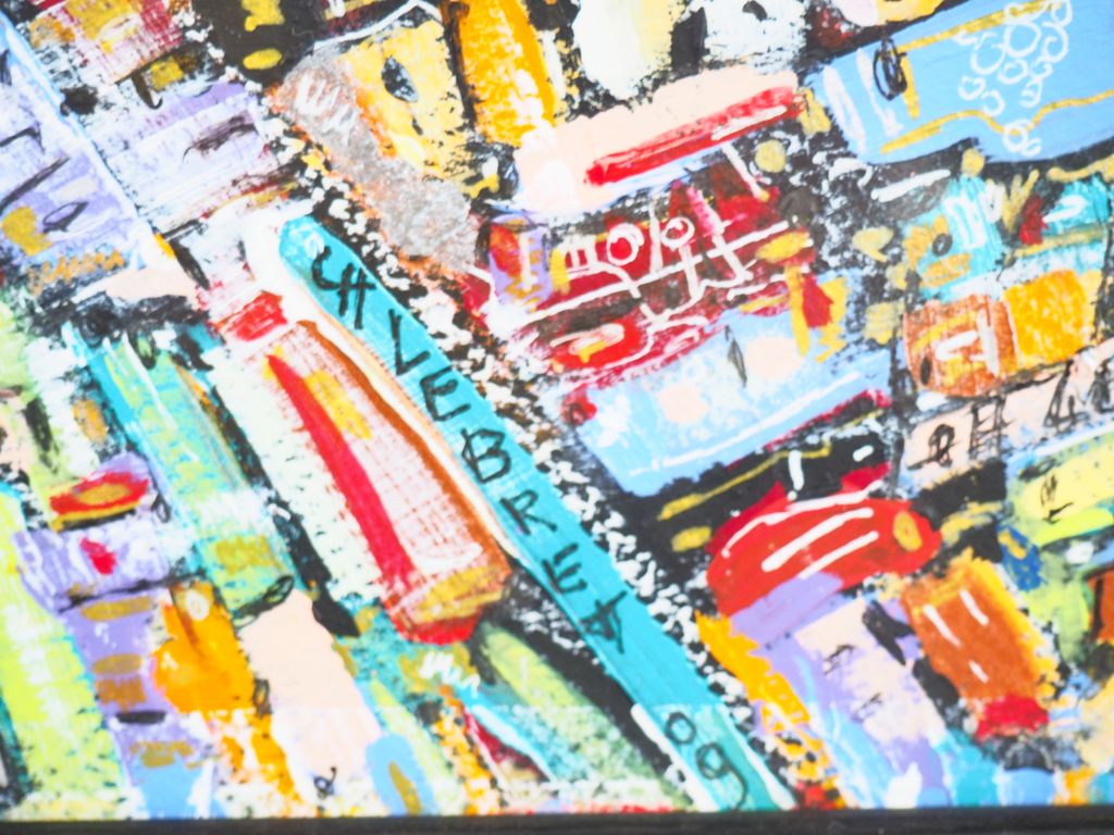 LEBRET. "composition". Technique mixte, signée en bas à droite. Dim. 40 x 40 cm.