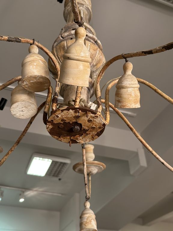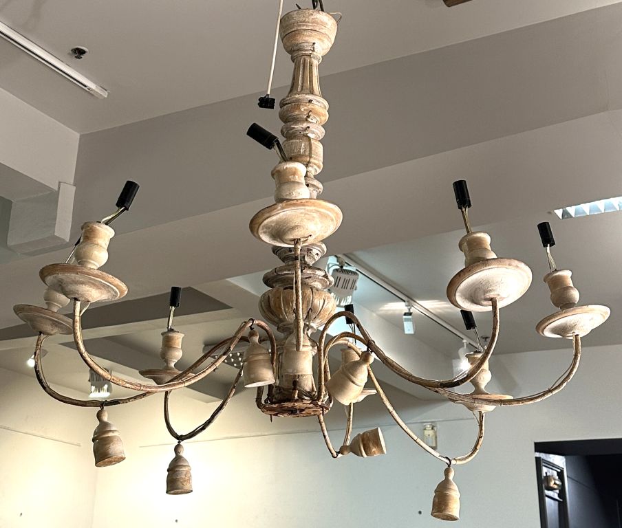 Lot de Lustre en métal et bois laqué gris, éclairant à 8 lumières. au prix de 100 à 150 € en vente aux enchères par l'hôtel des ventes Primardeco