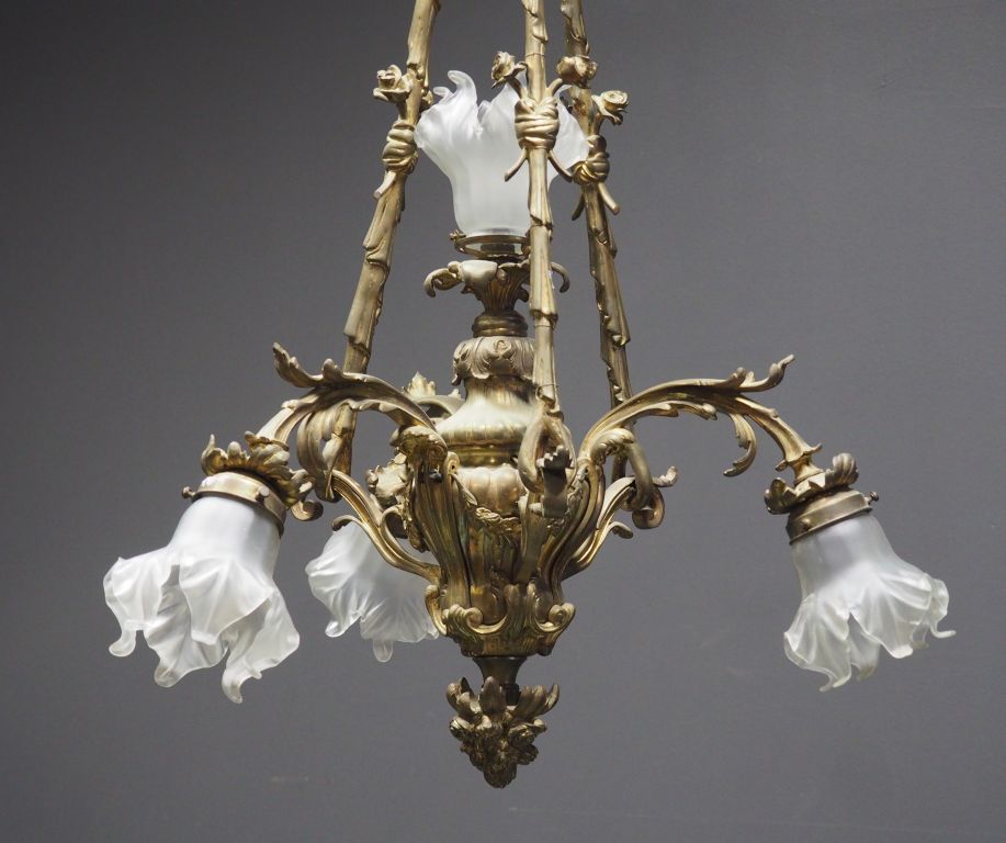 Lot de Lustre Napoléon III en bronze, éclairant à quatre lumières. H. 86 cm. au prix de 300 à 400 € en vente aux enchères par l'hôtel des ventes Primardeco