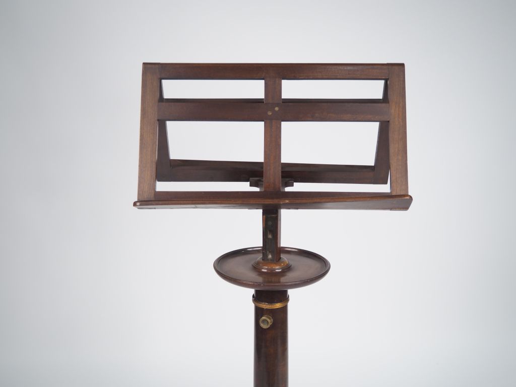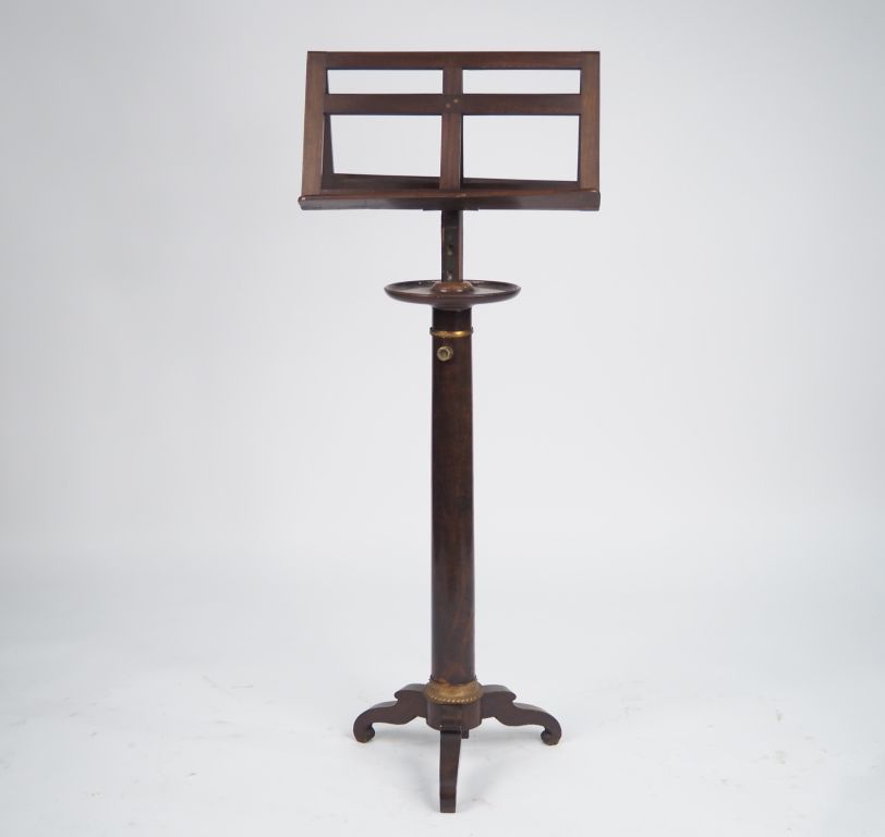 Lutrin de style Empire en acajou et placage d'acajou, ornementation de laiton, fût cylindrique piètement tripode. Dim. 135 x 52 cm.