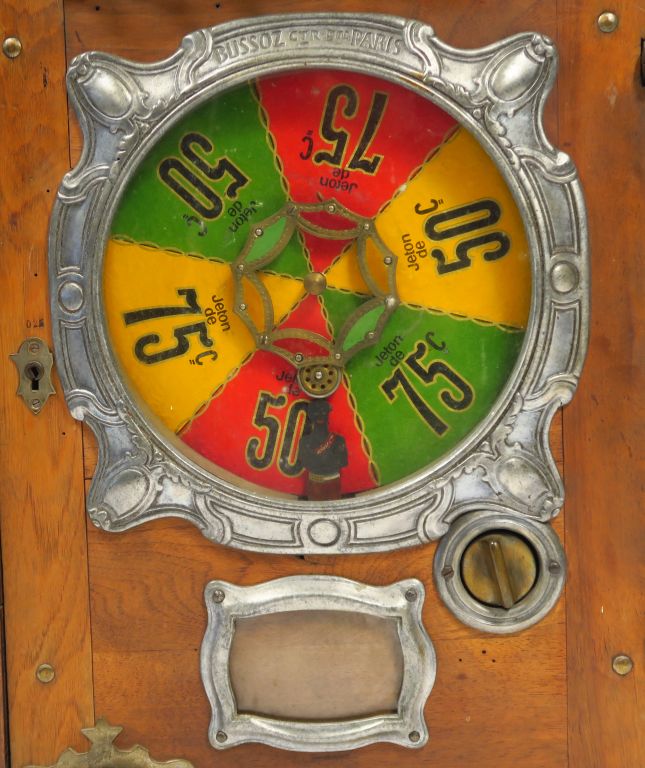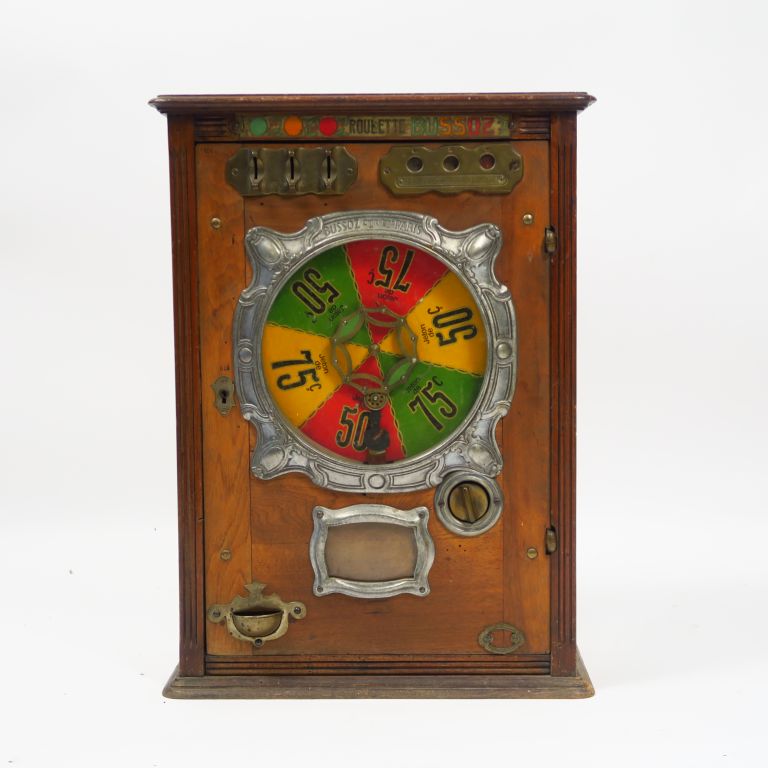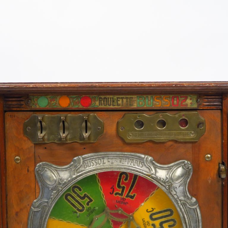 Lot de Machine à sous "Roulette Bussoz". Dim. 67 x 21 x 49 cm. au prix de 150 à 250 € en vente aux enchères par l'hôtel des ventes Primardeco