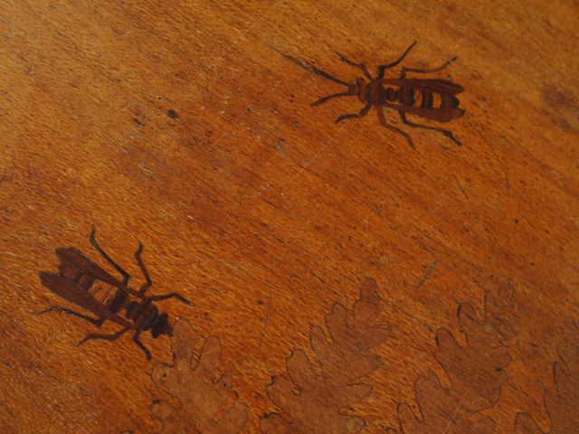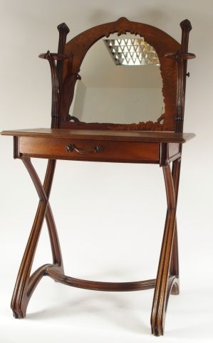 MAJORELLE (attribué à). Coiffeuse Art Nouveau en marqueterie, à décor de fleurs et d'insectes.