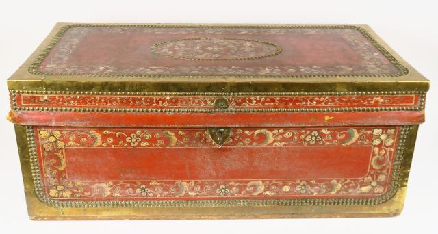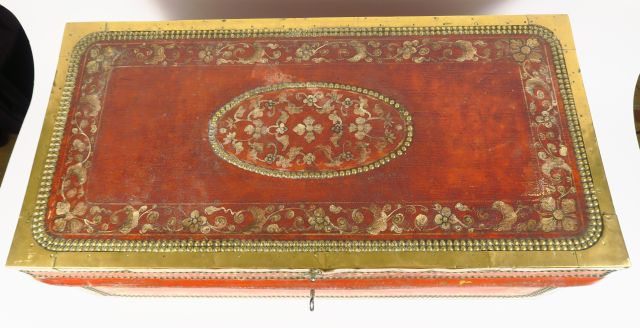 Malle XIXème en cuir peint et laiton.