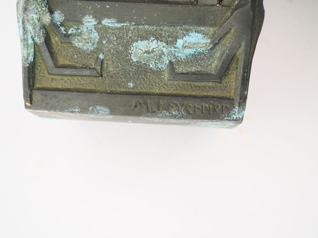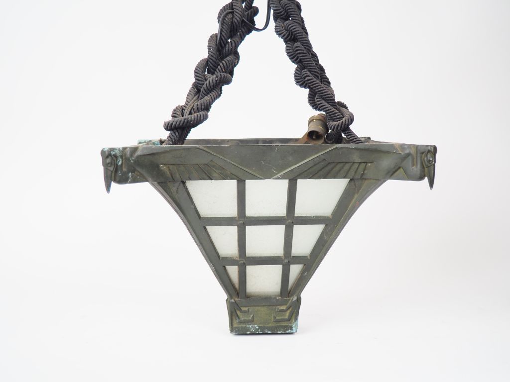 Max LE VERRIER. Suspension en régule et verre à décor d'oiseaux. Dim. 25 x 33 cm