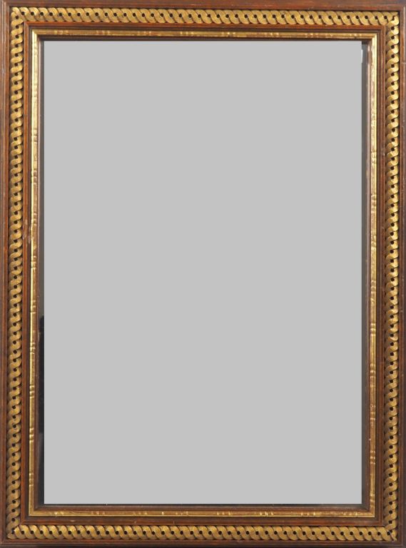 Miroir moderne en bois vernis et doré à décor de frises de postes. Dim. 51 x 38 cm.
