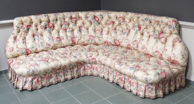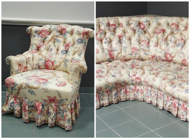 Mobilier de salon comprenant un canapé d'angle et une paire de fauteuils, garniture de tissu capitonné