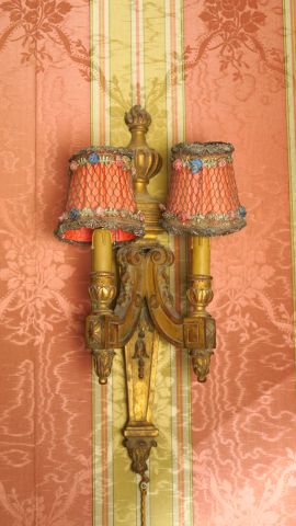 Paire d’appliques doubles de style Louis XVI en bois sculpté et doré, à décor de fleurons