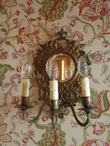 Paire de bougeoirs de style Haute-Epoque en bronze, paire d'appliques de style Louis XVI en bronze éclairant à trois lumières