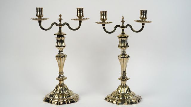 Lot de Paire de bougeoirs doubles en bronze argenté. au prix de 100 à 150 € en vente aux enchères par l'hôtel des ventes Primardeco