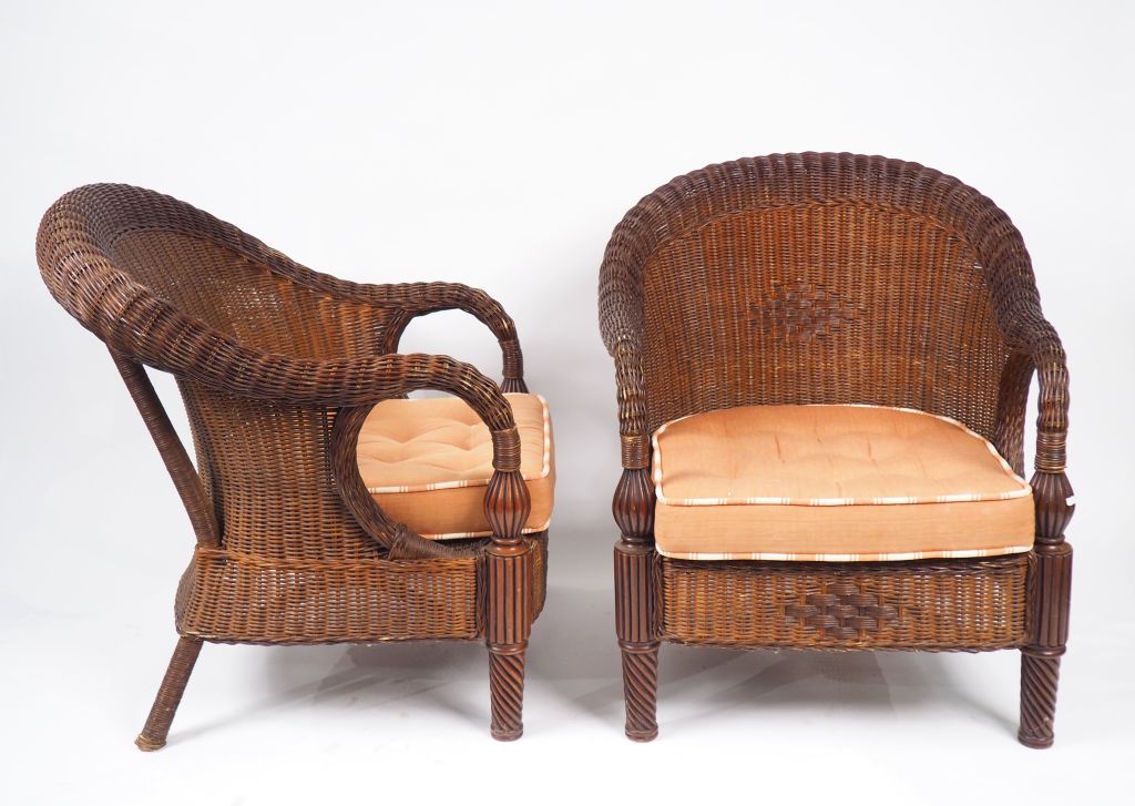 Lot de Paire de fauteuils coloniaux en acajou et rotin. au prix de 350 à 500 € en vente aux enchères par l'hôtel des ventes Primardeco