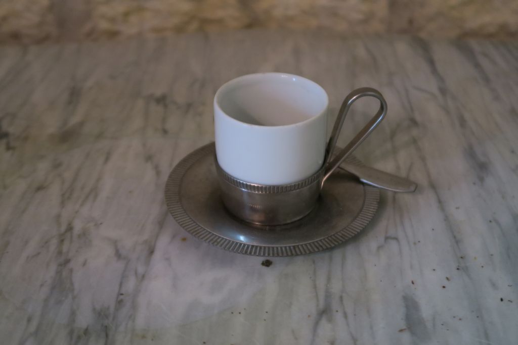 Partie de service à café en porcelaine et métal argenté comprenant 6 tasses et sous tasses. 2 soupières en porcelaine polychrome à décor de fleurs.