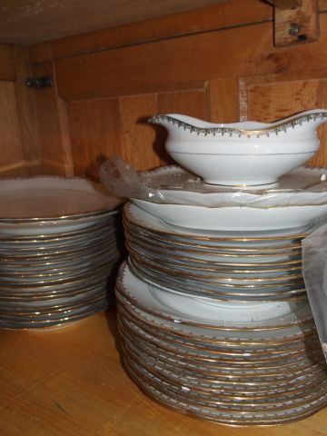 Lot de Partie de service de table en porcelaine blanche rehaussée d'or au prix de 60 à 80 € en vente aux enchères par l'hôtel des ventes Primardeco