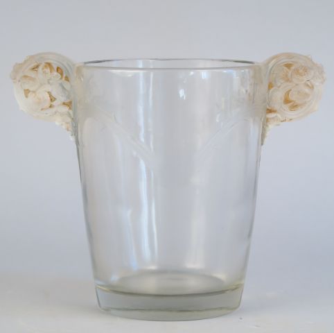 Lot de R. LALIQUE. Vase à anses, à décor de fleurs. Signé (accident) au prix de 200 à 300 € en vente aux enchères par l'hôtel des ventes Primardeco