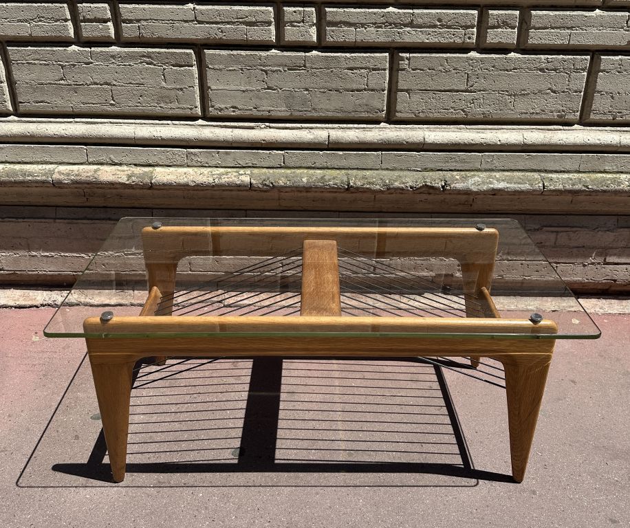 René-Jean CAILLETTE. Table basse années 50 en bois, verre et métal laqué noir. Dim. 41 x 96 x 48 cm.