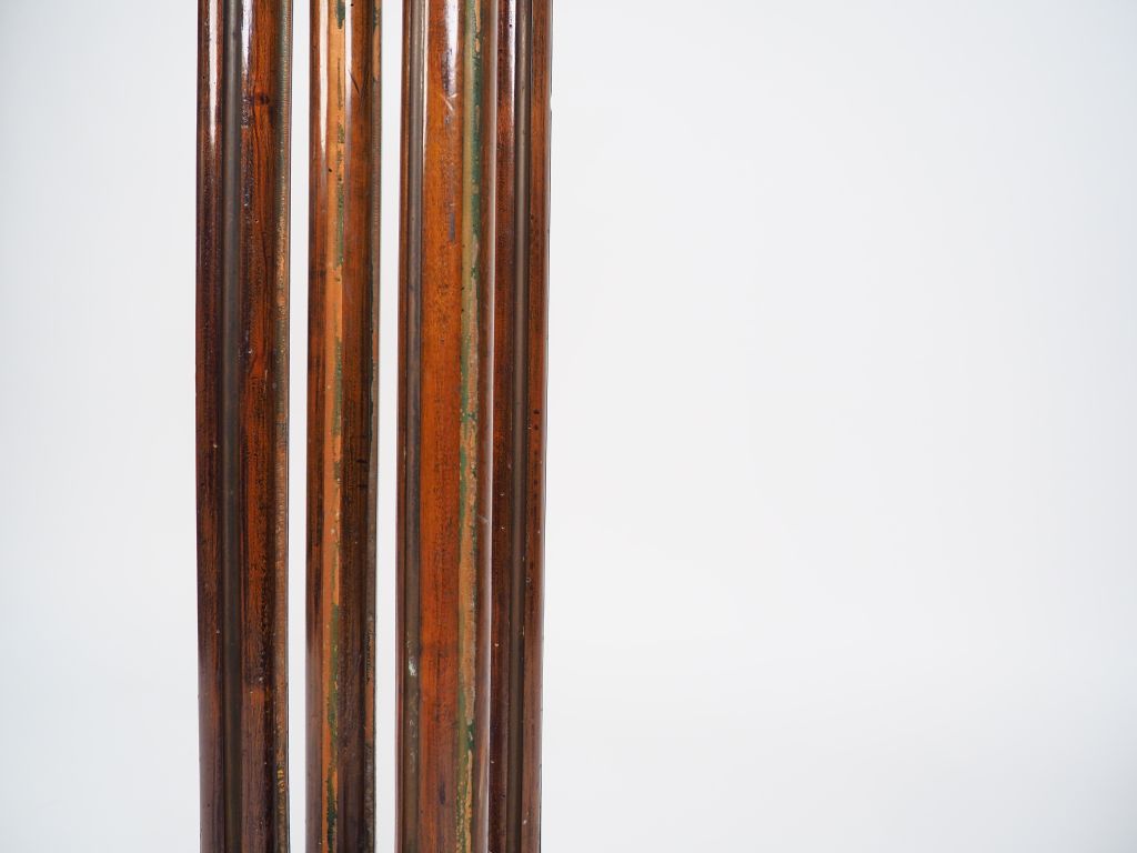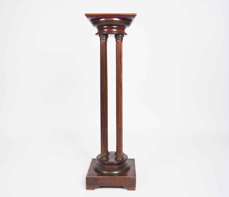 Sellette de style Louis XVI en acajou et placage d'acajou, à décor de 4 colonnes et fileté de laiton. H. 111,5 cm.